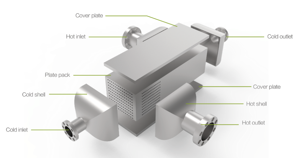 Les échangeurs de chaleur à plaques polaires (PCHE) offrent une efficacité de transfert thermique ultra-élevée, avec des coefficients de transfert allant de 2 000 à 5 000 W/(m²·K), soit 2 à 4 fois supérieurs à ceux des échangeurs conventionnels. L’écart de température entre les deux échangeurs peut être aussi faible que 2 à 3 K. Dans les systèmes de puissance de l’ordre du mégawatt, les récupérateurs PCHE peuvent atteindre une efficacité de 95 %, ce qui se traduit par une amélioration du rendement thermique de 20 à 25 %.